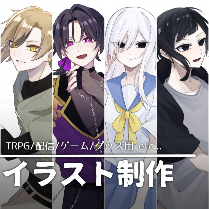 TRPG立ち絵やスチル等描きます! 青年を描くのが得意です。 ※平日と土曜日は日中仕事をしているため、返信が遅れる可能性があります。ご了承ください。 ▼実績 (2025年2月28日時