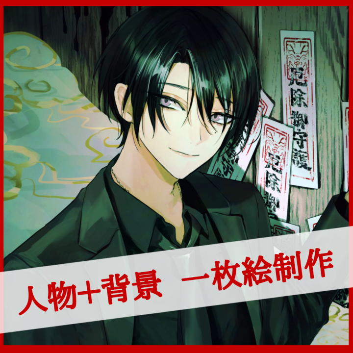 キャラクターは少年~青年、ジャンルはダークファンタジーや和風ホラー系イラストを主に得意としておりますが、明るい雰囲気のものやBLGLなど、それ以外も柔軟に対応致します!