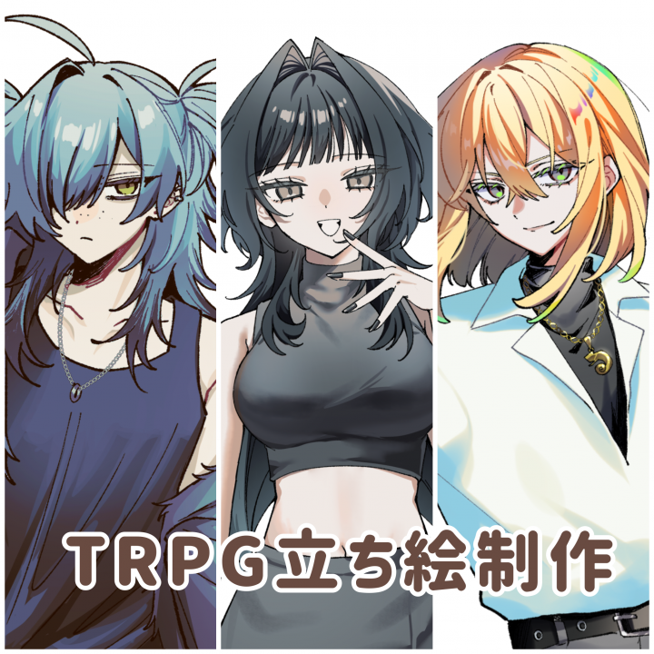 ご覧頂きありがとうございます🌼 TRPGで使用する立ち絵や、シナリオ付属のNPC立ち絵などを制作いたします。 お気軽にお声がけ下さい🌻 普段は10~30代のキャラを描くことが多いです。
