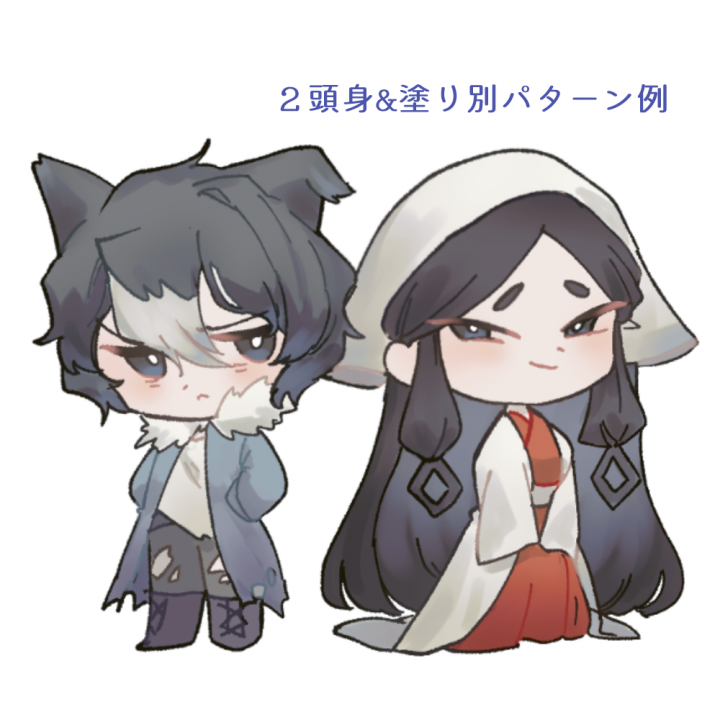 SDキャラは性別や人外問わず2~5頭身の間でご希望に合わせて制作いたします。