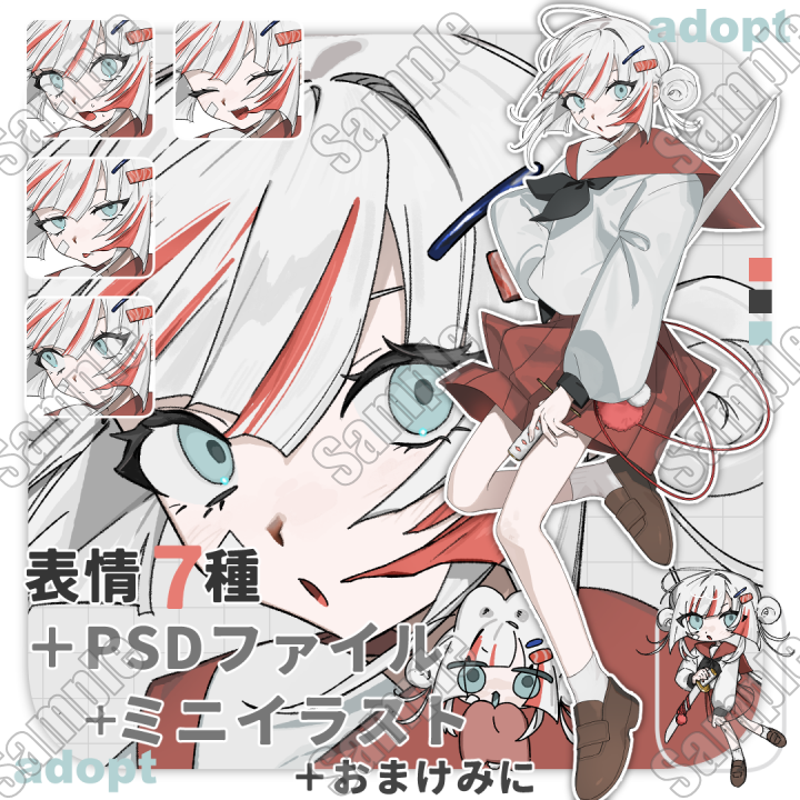 Illustrator 灰色と原色を使ったイラストが好きです。 基本料金 1枚絵 18,000円~ 立ち絵(全身) 20,000円~ 予算によって変動可能です。