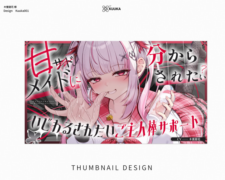 主に同人音声作品サムネイル制作をしております。 作品の魅力を引き出すサムネイル制作を心がけています!