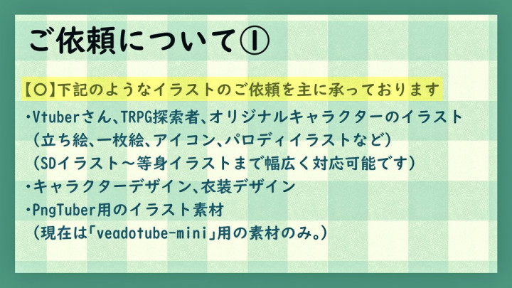 ご覧いただきありがとうございます! はじめまして、らむかたと申します。 本業の傍らで、絵のご依頼を受けております。 絵柄や塗りなどにとらわれず、お客様一人一人に合わせた絵の納品を心がけており