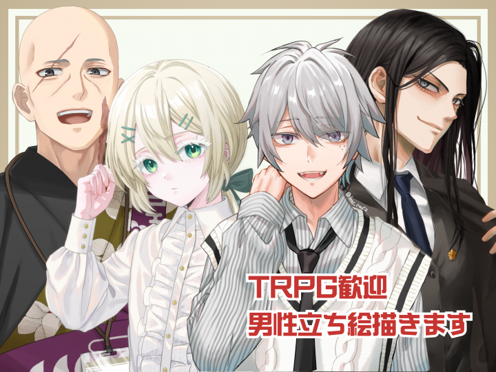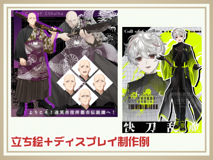 シナリオ同梱イラストや、人物以外のイラスト(マップや小道具・異形等)も是非お声がけください。