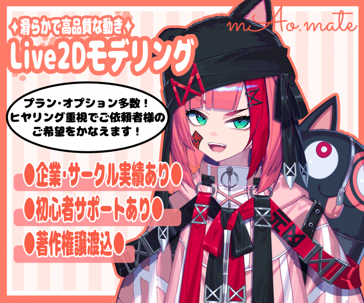 目を留めていただきありがとうございます! Vtuber用Live2Dクリエイターのゆふのまおと申します ~個人の希望を最大にかなえる~ を目標にモデリングを行っております! ︎✦︎別サ