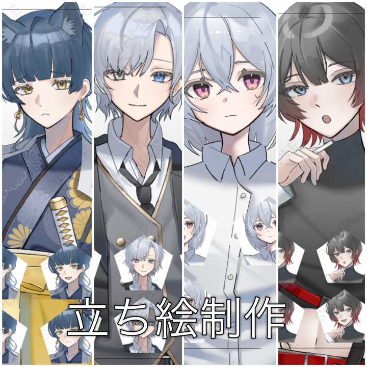 歌ってみた動画のサムネイルや実況動画の立ち絵等の制作実績があります。