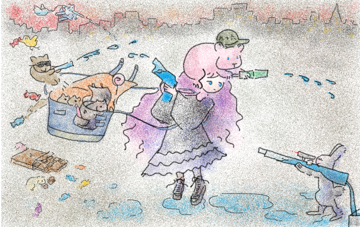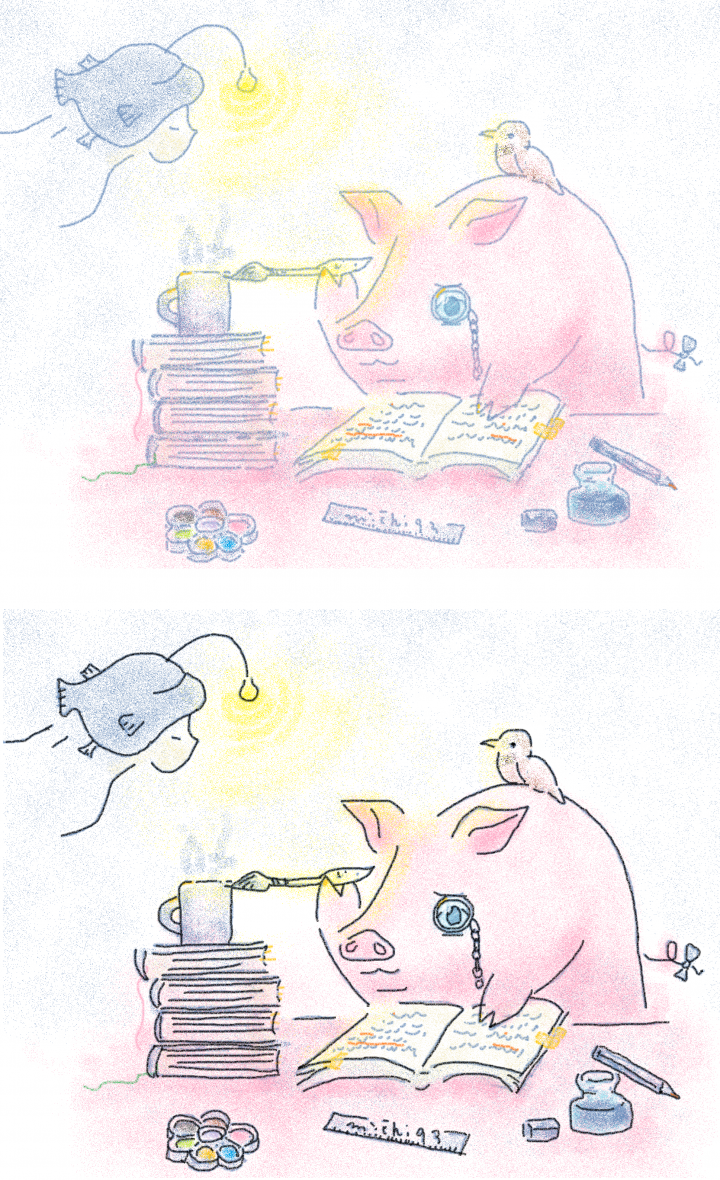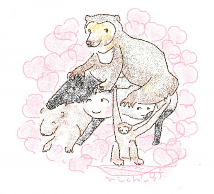 絵本のような柔らかい動物のイラストを描いています。