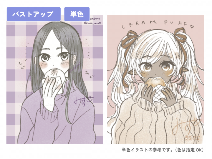 すきなことを楽しむお手伝いができればうれしいです。 描いたもの参考▶︎ https://xfolio.jp/portfolio/mizuco ※ここでは一次創作キャラのみ取り扱っています。