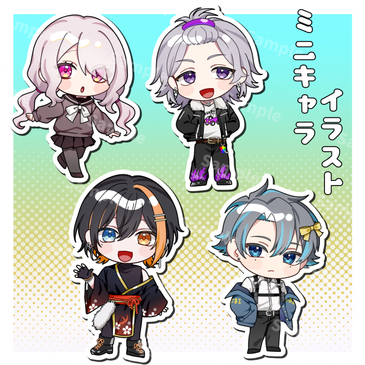 キャラ販売を中心に、立ち絵、SNSアイコン、サムネイル等のイラスト制作のご依頼も承っています。別サイト、企業様とのお取引にて100件以上のコミッション実績があります。