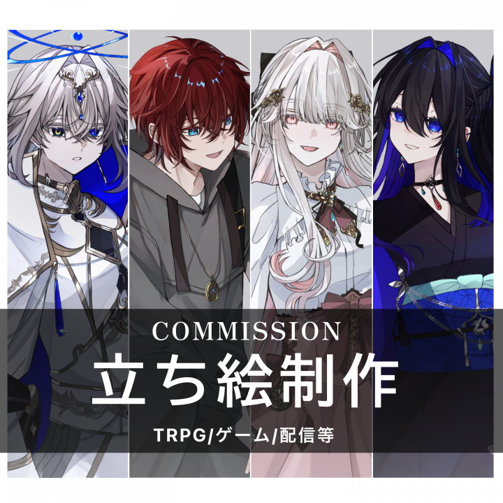 こんにちは、鯖缶と申します🐟 TRPG、ゲーム等で使用できる、立ち絵等を制作します。🖋 ご依頼、ご質問、お見積もりのご相談はいつでもお受けいたしますので、お気軽にメッセージにてお声かけください。よ