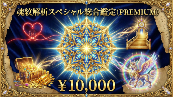 「魂に刻まれた紋(パターン)」と「これから開いていく未来」を物語のように読み解くオリジナル占術です。