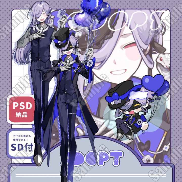 現在多忙のため、お受けしているご依頼は「お迎えいただいたAdoptの立ち絵/SD PSDファイルのお渡し」のみとさせていただいております。