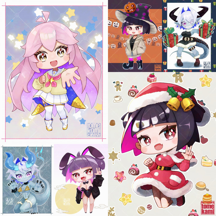 SNS用イラストやアイコンはもちろん、TRPG用立ち絵、Vtuber用モデル、Live2Dのモデリングデータ等様々な用途の出品に利用できます。