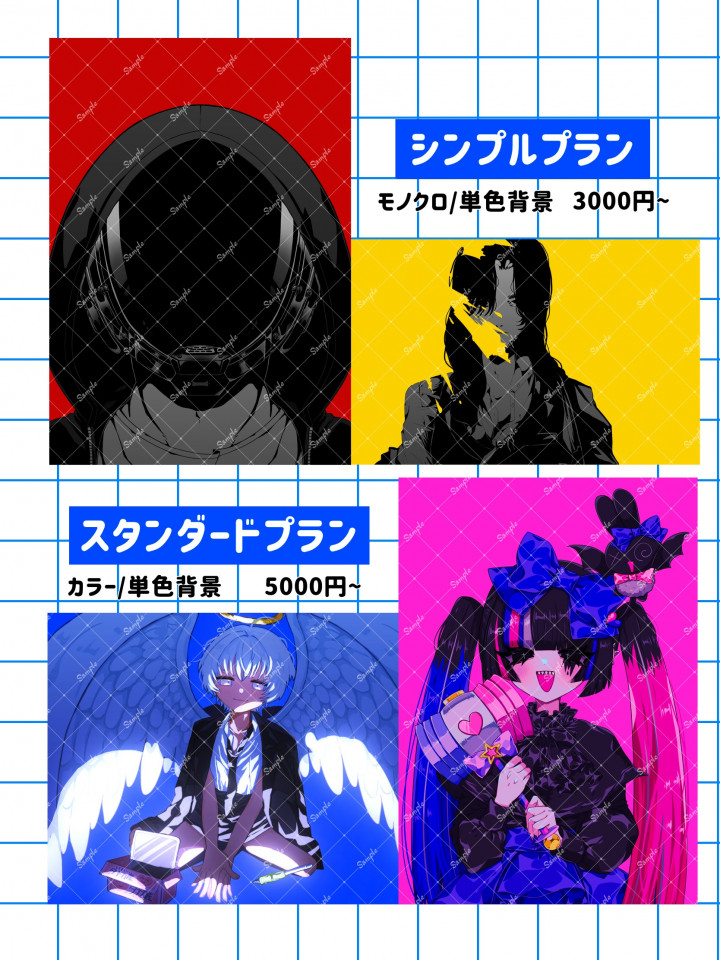 立ち絵の販売や、楽曲サムネイル作成、イラスト一枚絵作成などをしています。