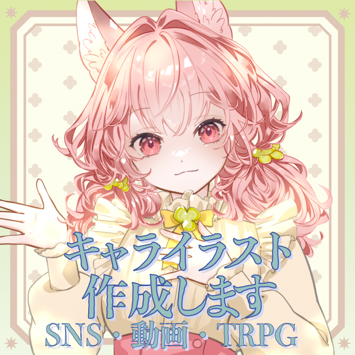 はじめまして。イラストレーターとして活動しています。 キャラクターイラストを中心に、SNSアイコン、立ち絵などを制作しています。 ご依頼内容に応じて、雰囲気やテイストの調整が可能です。 ご希