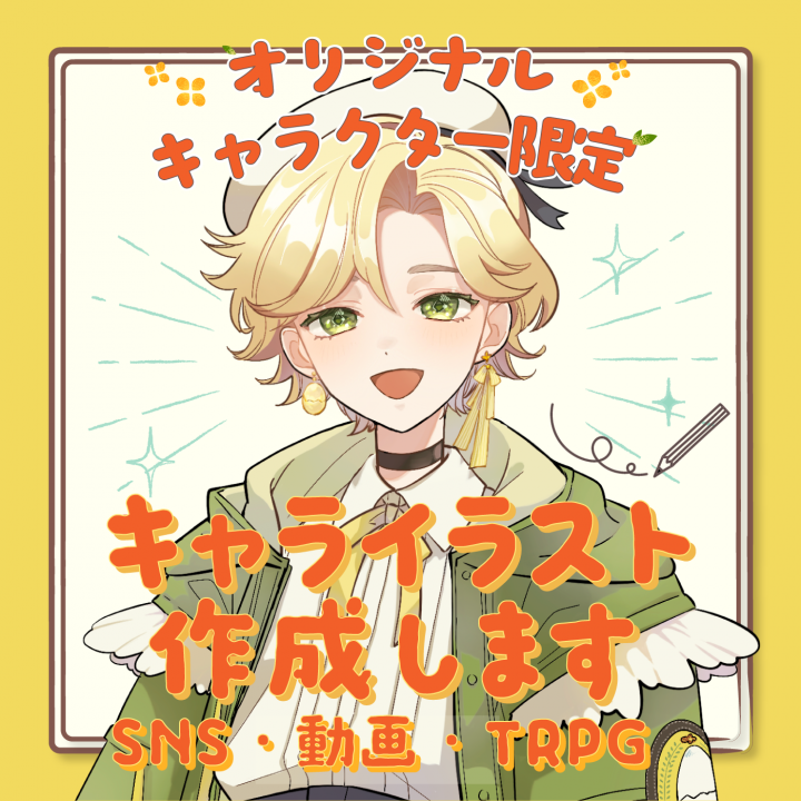 キャラクターイラストを中心に、SNSアイコン、立ち絵などを制作しています。