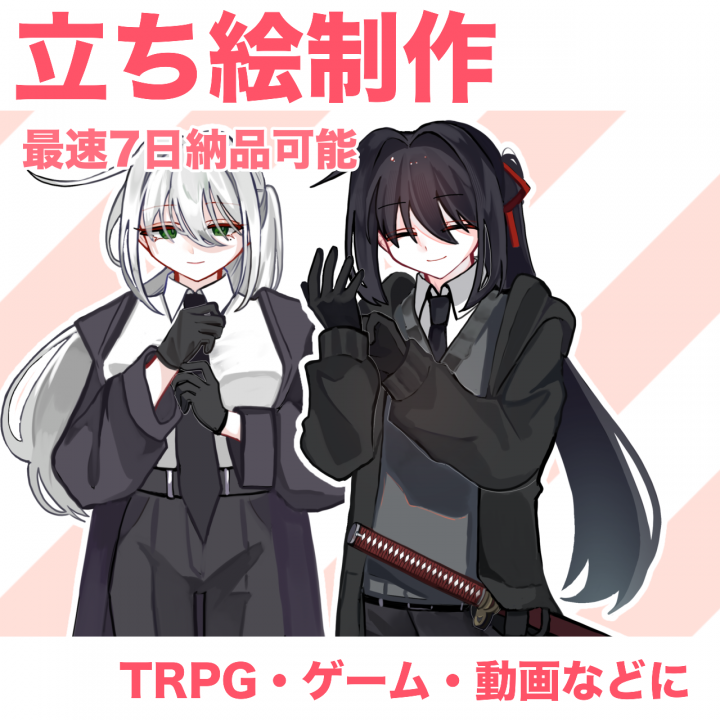 女の子や和装、長髪男子等が得意で、TRPGの立ち絵をメインに制作しております。