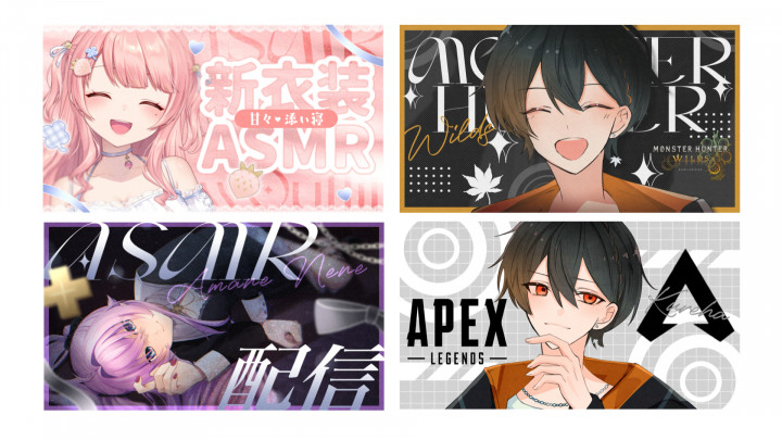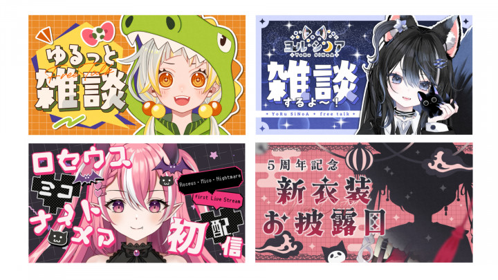 主にVTuber・Vライバー・歌い手様向けのデザインのご依頼を承っております。